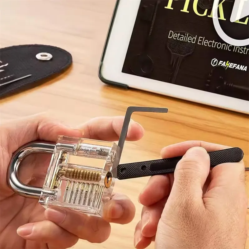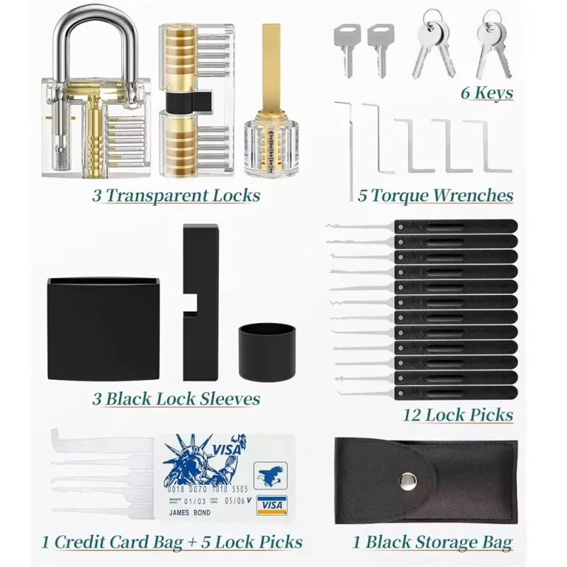 36pcs Lock Pick Set Transparent Training Locks Lock Picking Practice Kit Anti Slip Grip Lock Picks High Precision Cylinder Locksmith Tools Portable Storage Bag