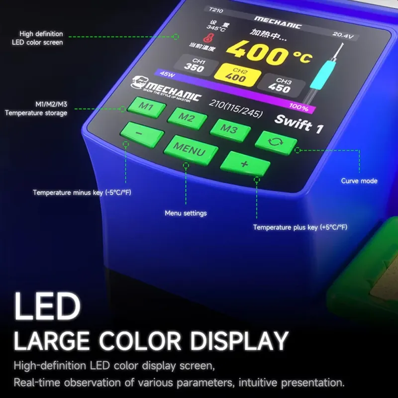 MECHANIC Swift 1 Intelligent Digital Soldering Station 100-480C Rapid Heating Curve Mode LED Display Supports 210 245 115 Handles Soldering Repair Tool