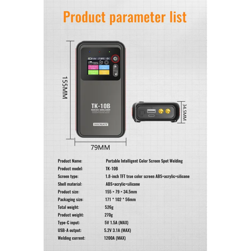 TK-10B 2in1 Portable Intelligent Double pulse Spot Welder 1.8inch LCD Screen 5000mAh Battery Fast charging charging treasure High Precision Welding Nickel/iron/steel sheet.etc