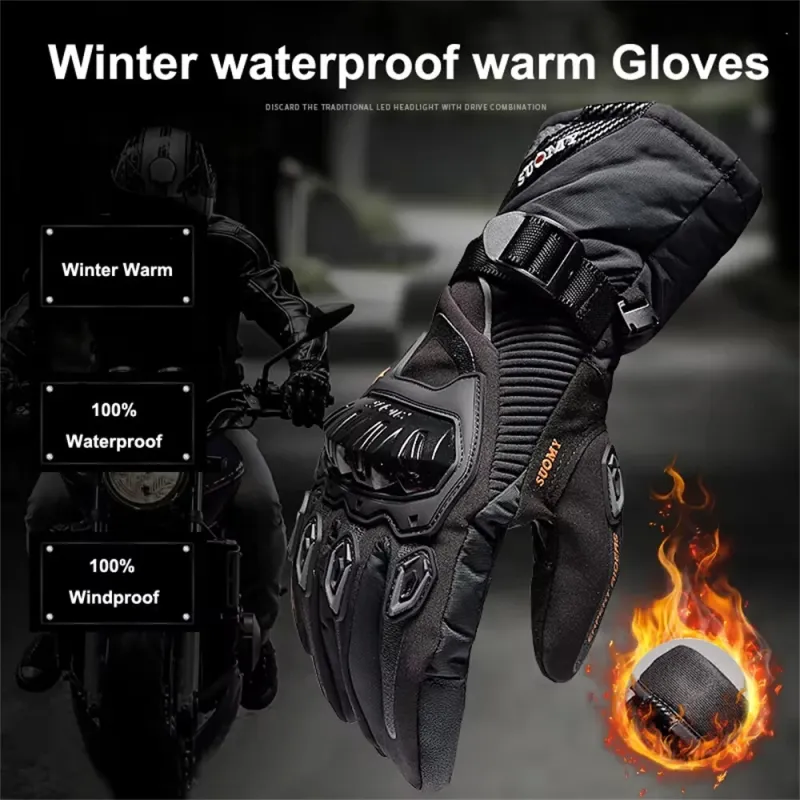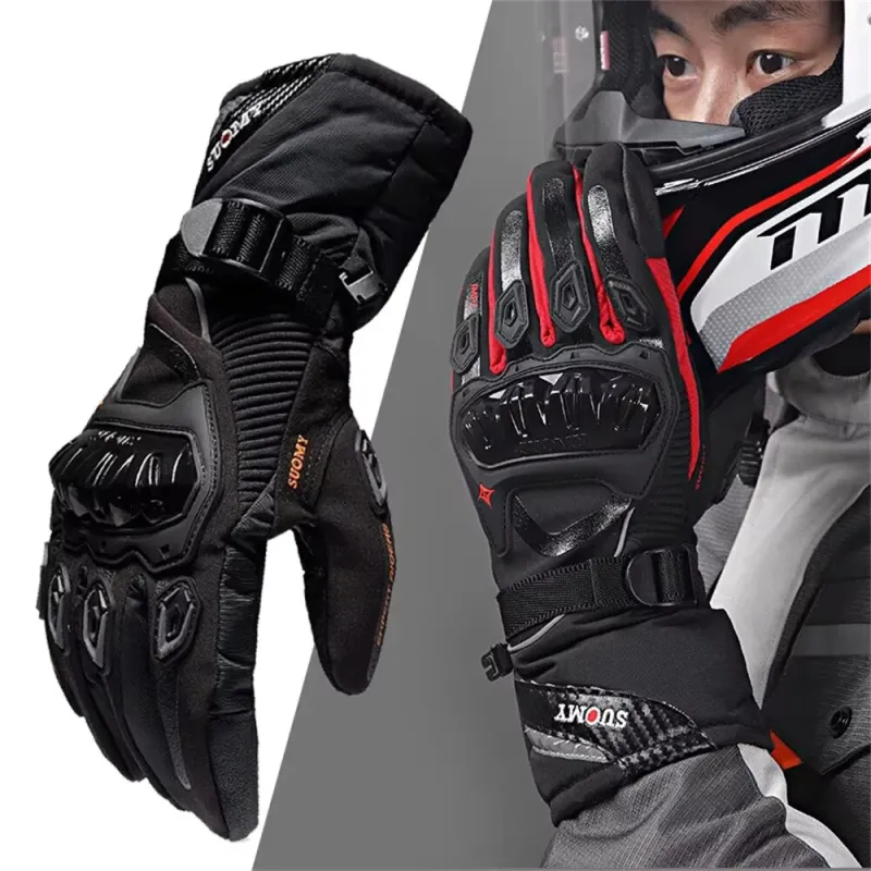 SUOMY Motorcycle Gloves Waterproof Windproof Winter Warm Touch Screen Anti Slip Protective Knuckle Guard Cold Resistant Moto Riding Gloves