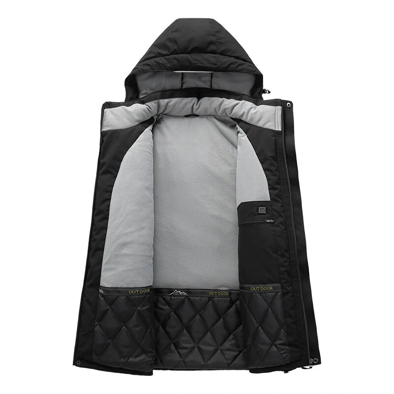 Winter Smart Heated Cotton Jacket For Men Warm Plus Velvet Thickened Down Cotton Jacket Heating USB Charging Outdoor Jacket