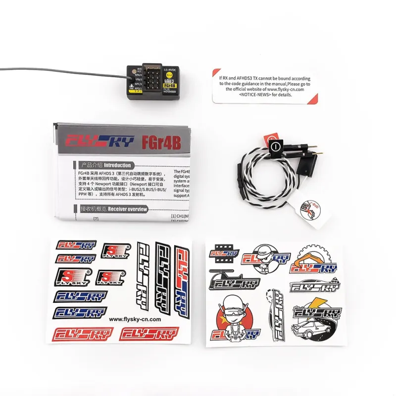 FlySky FGr4B 2.4GHz 4CH AFHDS 3 Micro Mini RC Receiver PWM/PPM/i-bus/S.BUS/i-bus2 Output for PL18 NB4 NB4 Lite NB4+ Transmitter RC Car Boat