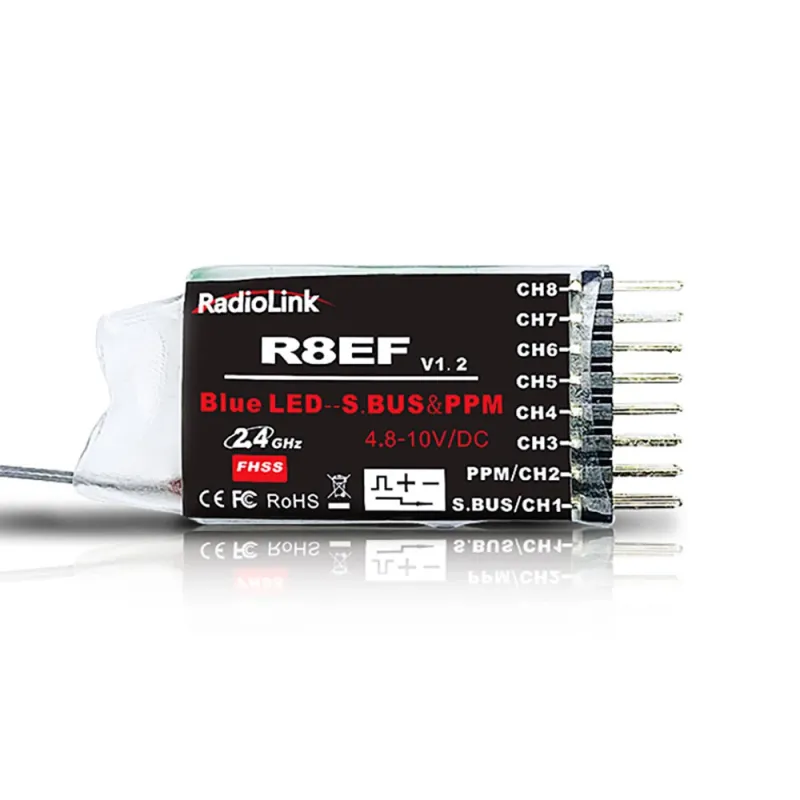 RadioLink R8EF 2.4GHz 8CH Long Distance PWM PPM SBUS RC Receiver for T8FB T8S RC Transmitter RC Airplane Car Boat