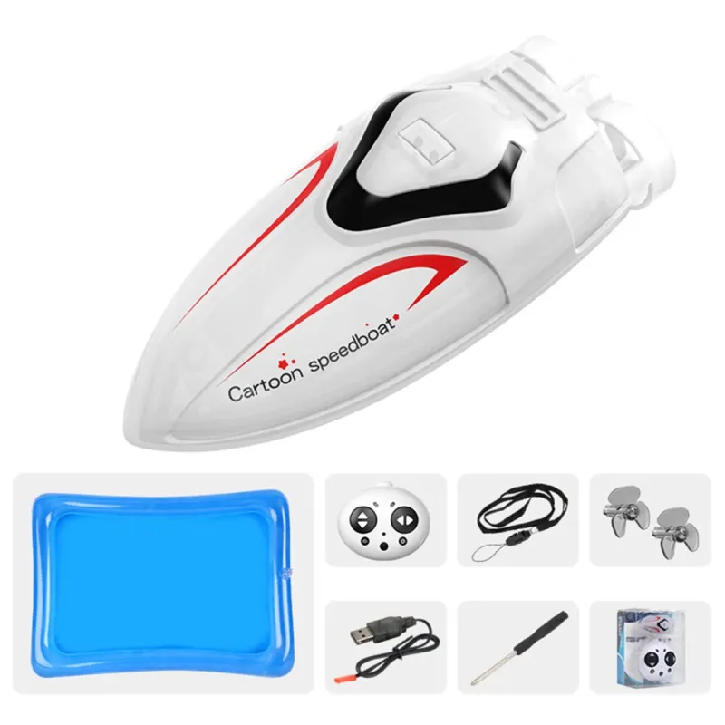 C166 Mini Remote Control High Speed RC Boat Led Light Palm Speed Boat Summer Water Toy Pool Toy W/Inflatable Swimming Pool