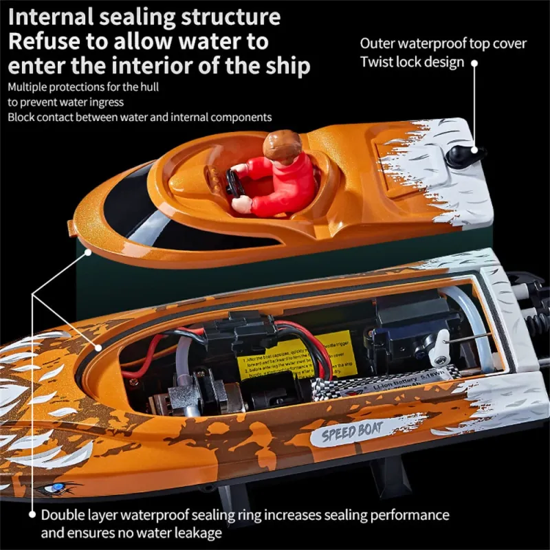 HXJRC HJ822 2.4G RC Boat Capsized Reset High Speed LED Light Speedboat Waterproof Electric Racing Vehicles Models Lakes Pools Remote Control Toys