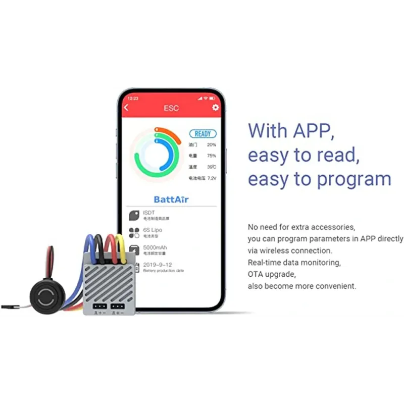 ISDT ESC90 90A Brushed ESC Full Waterproof App Programming with Brake Motor Electronic Speed Controller RC Car Touring Car/Buggies/Trucks/Rock Crawler Vehicles Models Parts