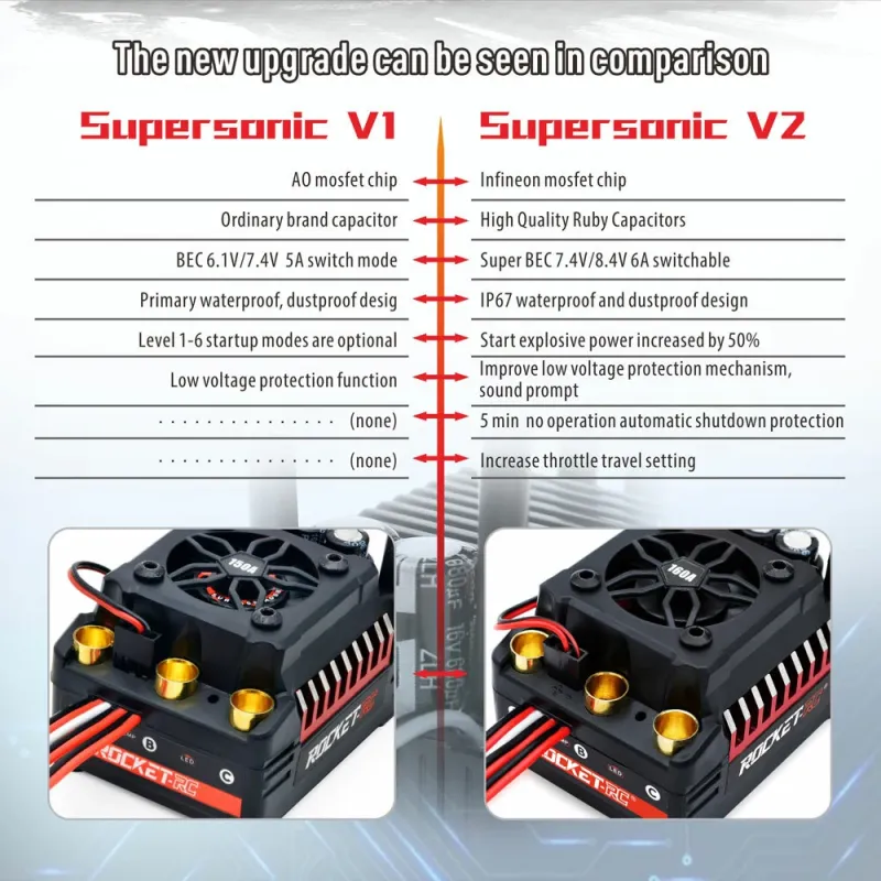 Surpass Hobby Rocket V2 Waterproof 130A/160A Brushless ESC for 1/7 1/8 RC Car Vehicles Model Parts