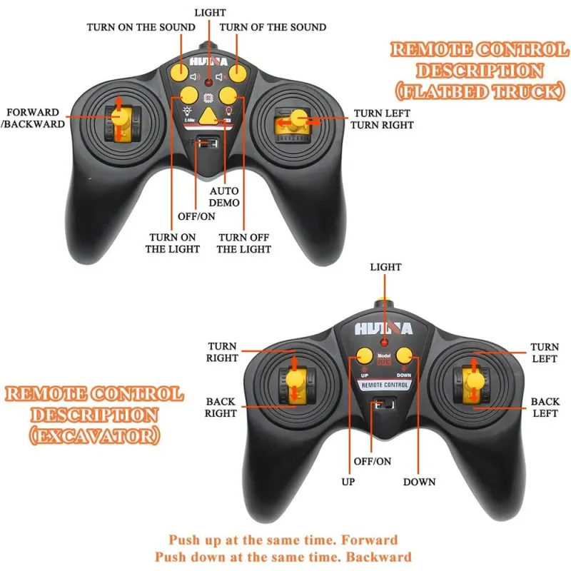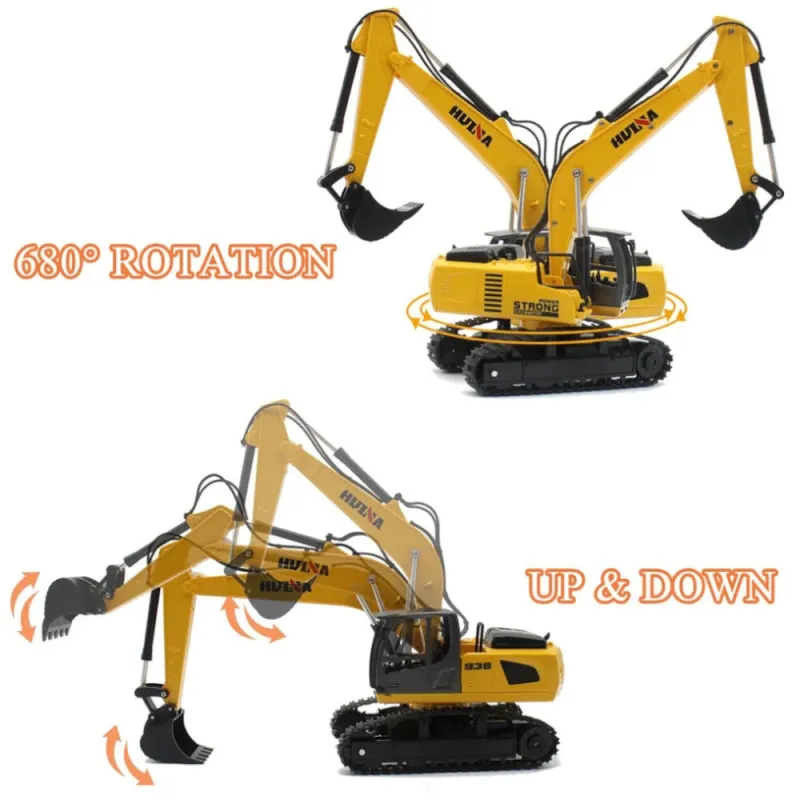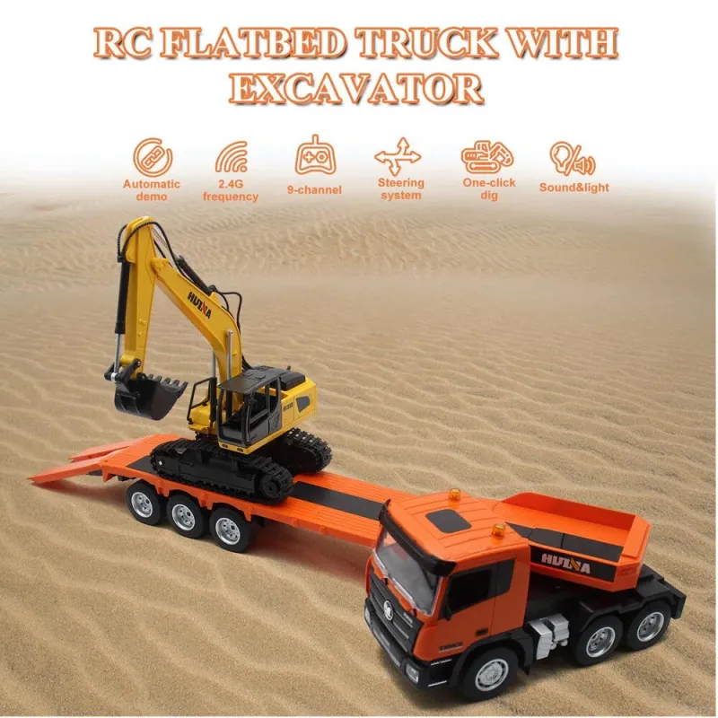 HuiNa Toys 1319 RTR 1/18 2.4G 9CH RC Car Excavator Flat Trailer Flatbed Semi Truck Remote Control Simulation Sound LED Light Engineering Construction Vehicles Models Children's Birthday Gift for Boys