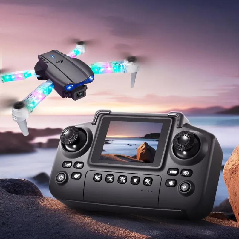 YLR/C E99 / E99D WiFi FPV with LCD Screen Controller HD Dual Camera Lighting Arms Optical Flow Positioning Colorful LED Light Foldable RC Drone Quadcopter RTF