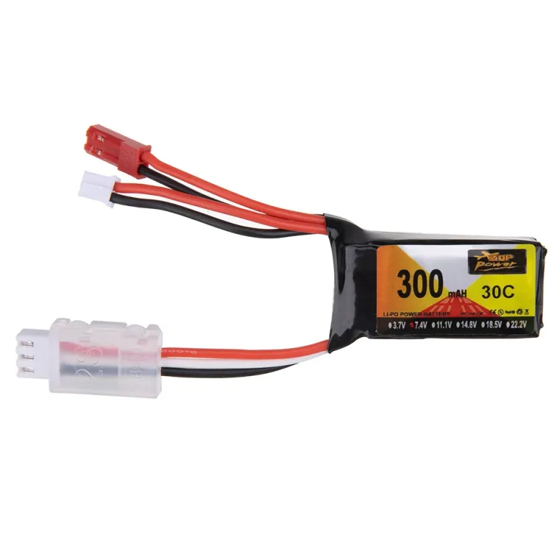 2Pcs ZOP Power 7.4V 300mAh 30C 2S LiPo Battery PH2.0 Plug for RC Drone