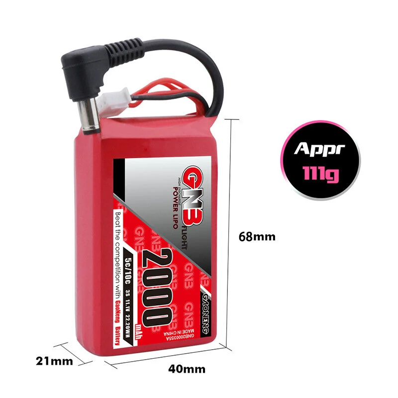 Gaoneng GNB 11.1V 2000mAh 5/10C 3S LiPo Battery DC5.5 Plug for Fatshark DJI FPV Goggles