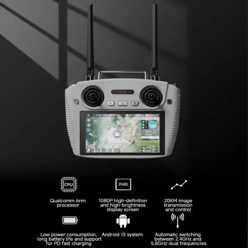 Skydroid G12 2.4/5.8GHz Dual Band RRadio Controller 5.5-inch High Brightness Screen 1080P Display 20KM Digital Image Transmission for FPV Racing Drone