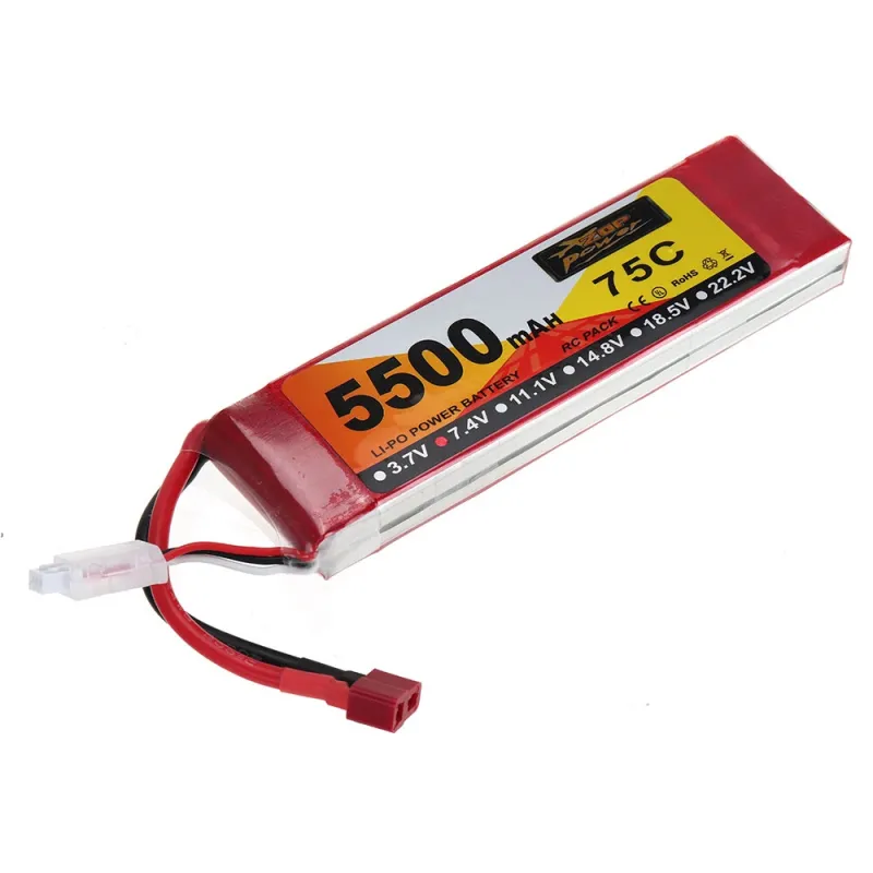ZOP Power 7.4V 5500mAh 75C 2S LiPo Battery T Deans Plug for RC Car