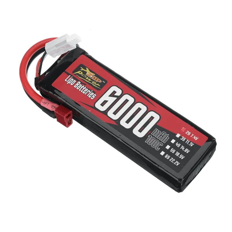 ZOP Power 7.4V 6000mAh 100C 2S LiPo Battery T Plug for RC Car