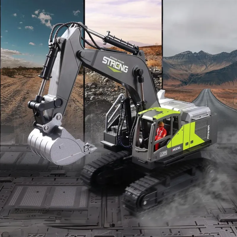 HJ Models 689-714A 1/16 2.4G 16CH RC Car Excavator Engineering Vehicles Alloy Bucket Digging 680 Rotation Spray LED Light Sound RTR Toys