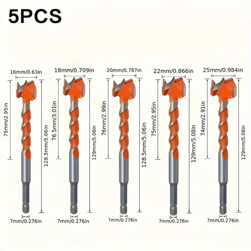 5PCS Carbide Hinge Boring Forstner Drill Bits for Wood & Locks Precision Boring Tools with Hex Shank (45 Gauge Steel)