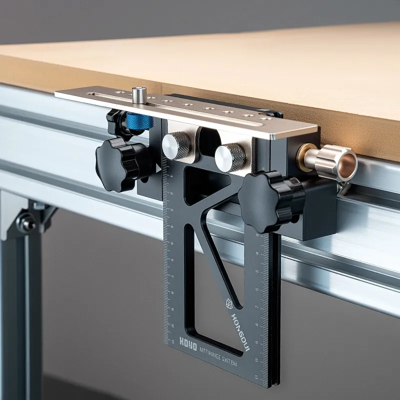 HONGDUI H040 BenchTop Quick Mount Hinge System Universal Aluminum Stainless Steel Compatible with Tracks Featuring T-Slot Precision Machined Quad Setup for Woodworking and Routing