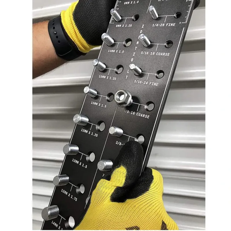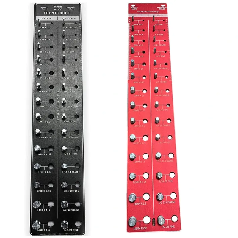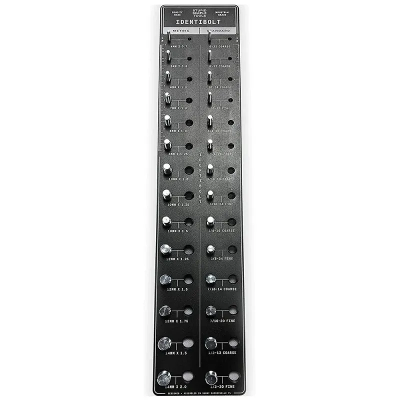 Identibolt Bolt and Nut Identifier Gauge 4x20 Inches Anodized Grey Aluminum Fastener Measurement Tool with Laser Etched Markings and Twin Rulers for Ultimate Precision