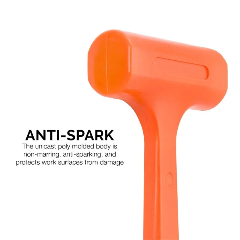 LB Dead Blow Hammer Neon Orange Unibody Molded Design 2 lb Polyurethane Head Spark and Rebound Resistant Anti Slip Grip for Auto Body Metal Woodwork Tools