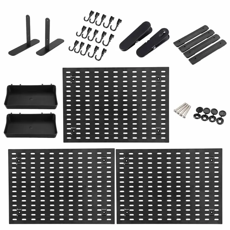 Portable Pegboard Organization Kit Multi Purpose Plastic Storage Board 90cm x 42cm Moisture Resistant Tool Free Assembly Adjustable Hooks and Trays Modular Design