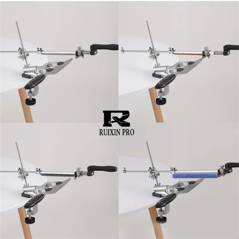 RX-009 Professional Knife Sharpener with 4 Whetstones Dual Clamps 360 Rotation Flip Design Fixed-Angle Stainless Steel Kitchen Chef Knife Sharpening Kit Abrasive Holding System Tools