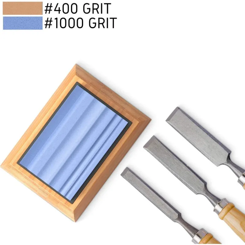 Wood Carving Sharpening Stone Kit 400 & 1000 Grit Whetstone with Multiple Notches Waterstone Straightens and Repairs Whittling & Carving Blades Chisels and Gouges