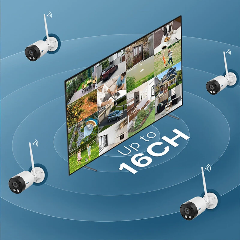 Hiseeu WK-4HBY08 4CH Wireless Security Camera System 8MP Ultra HD 4K WiFi Indoor Outdoor Color Night Vision Two-Way Audio CCTV System
