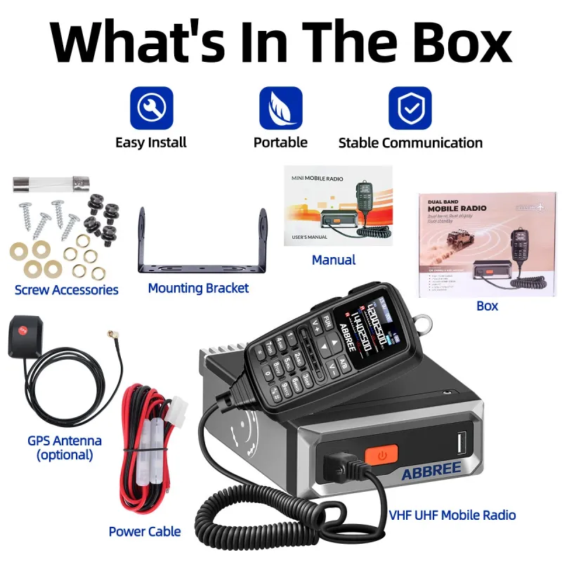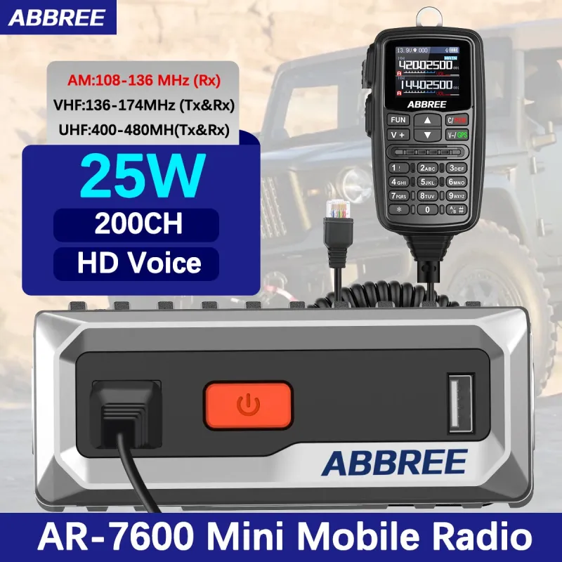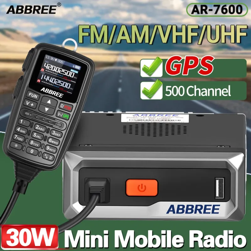 ABBREE AR-7600 V2 30W GPS Dual Band Walkie Talkie with NOAA Weather Alert Air Band Receive DTMF 500 Channels Long Range Wireless Copy Frequency Mobile Ham Radio for Car Vehicle