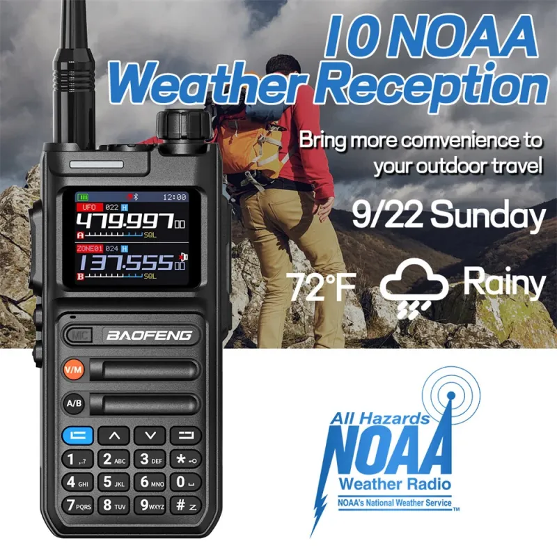 BAOFENG AR26 Walkie Talkie GPS Real-Time Positioning Voice Recording 10W Output 1000 Channels NOAA Weather Reception EU Plug