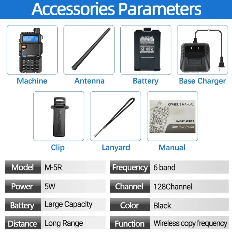 Baofeng M-5R Air Band Walkie Talkie Wireless Copy Frequency Long Range Six Bands Commutator Amateur Ham Receiver Two Way Radio