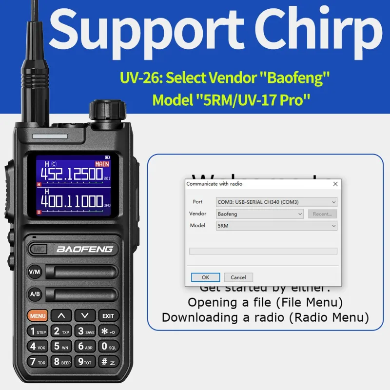 Baofeng UV-26 10W High Power Walkie Talkie Handheld Two Way Radio Long Range Multi Band NOAA Weather Alert 999 Channels Rechargeable Battery Type-C Charging Wireless Frequency Copy Transceiver Radio