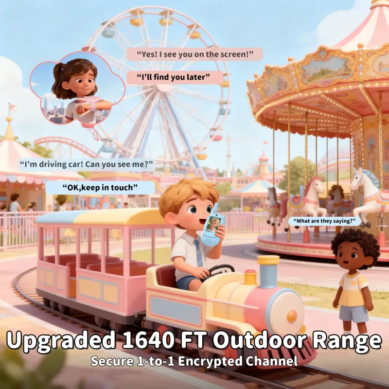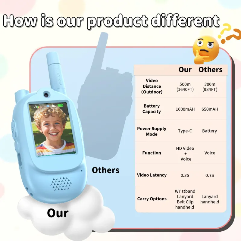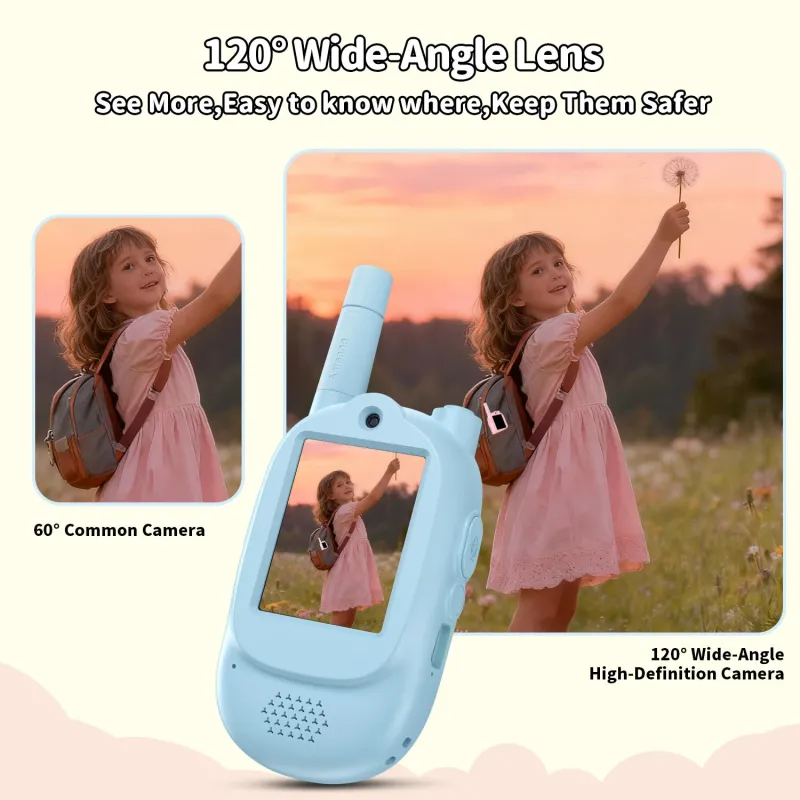 LM02 1 Pair Children Video Walkie Talkie 500m Range 120 Wide Angle Lens 1000mAh Type-C Charging Voice Changer Volume Adjustable Walkie Talkie Video Call