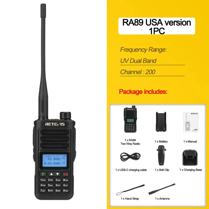 Retevis RA89 Ham Radio 10W Walkie Talkie Long Range IP68 Type-C Transceiver FM VHF UHF Communication Radio for Emergency