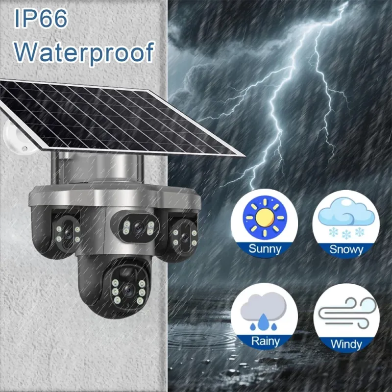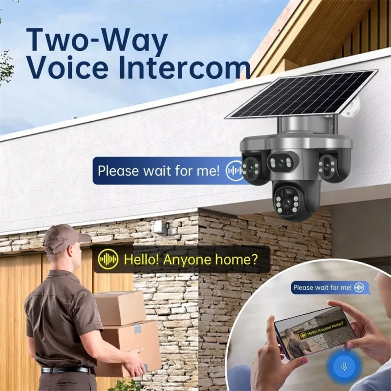 15MP HD V380 Pro Solar Powered PTZ Camera Three Lens Auto Tracking 10X Zoom Color Night Vision IP66 Wireless Outdoor Security Camera