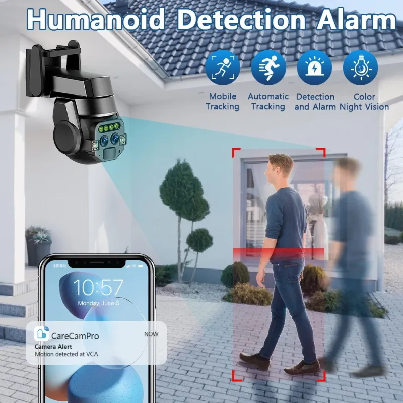 4K 6MP HD Dual-lens WiFi Surveillance Camera 10X Zoom Outdoors Night Vision Human Detection IP66 Waterproof Two-way Audio Monitoring Home Security Cameras