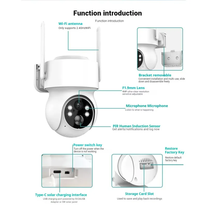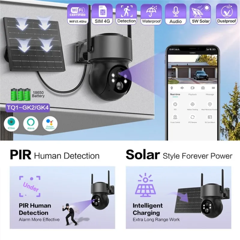 4MP Solar Powered WiFi IP Camera 320 Pan 90 Tilt PIR Motion Detection ICSEE APP Two-Way Audio Night Vision IP66 Waterproof Outdoor Surveillance Camera
