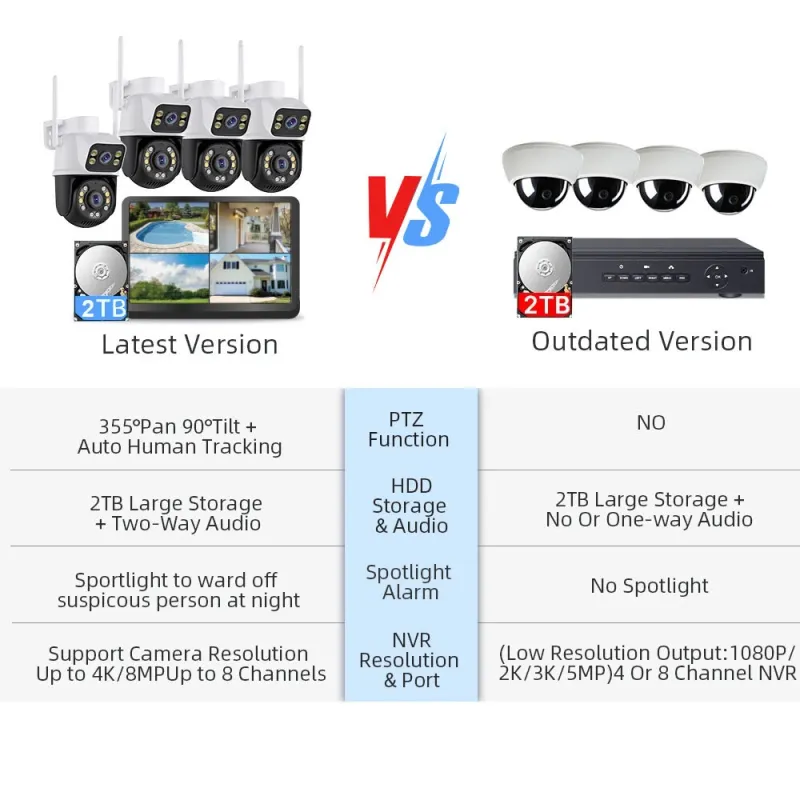 Guudgo 6MP HD 4CH Wireless Security Camera System Dual Lens WiFi Indoor Outdoor IP66 Weatherproof Night Vision 2 Way Audio Human Tracking for Home Surveillance CCTV Cameras