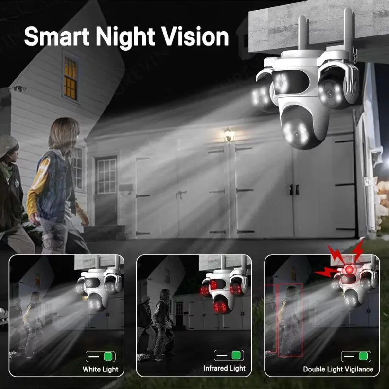WQQ890-XM-2 4-Lens-3 Screen PTZ Camera 9MP HD WiFi Wireless Security Camera Motion Night Vision IP66 Waterproof Outdoors Surveillance Cameras ICSEE APP