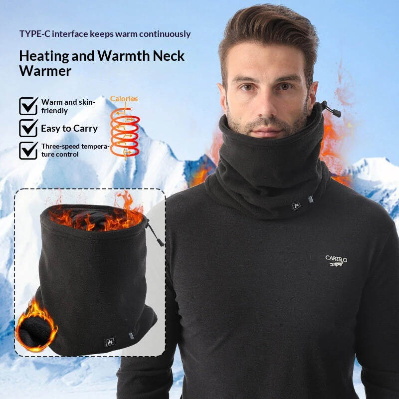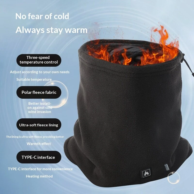 IPRee Polar Fleece Heated Neck Scarf with 3 Temperature Settings Type-Charging Electric Neck Warmer Thermal Neck Gaiter for Outdoor Winter Sports Cold Weather Gear
