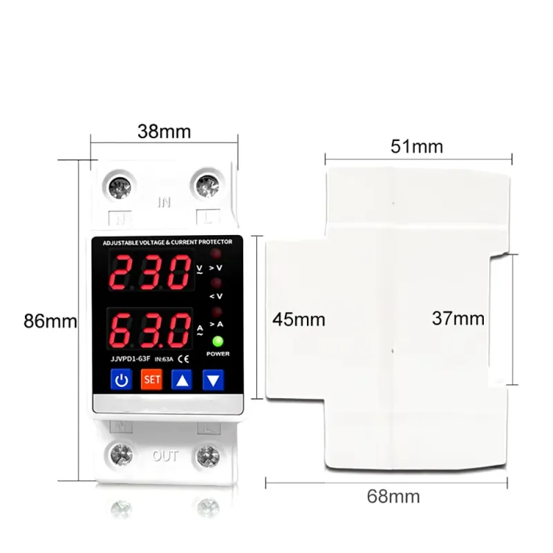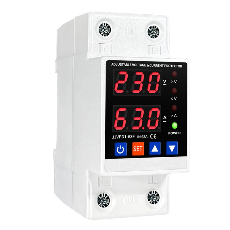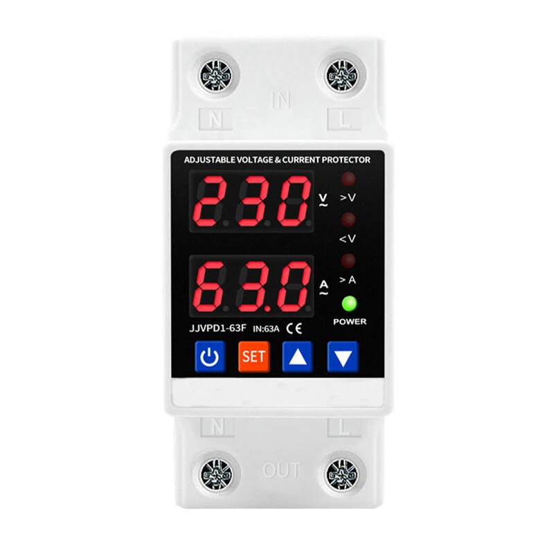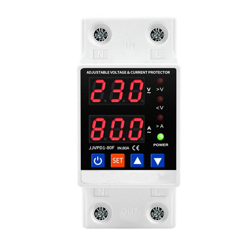 Dual Display 40A 63A 80A 230V Din Rail Adjustable Digital Over Under Voltage Relay Surge Protector Limit Over Current Protection