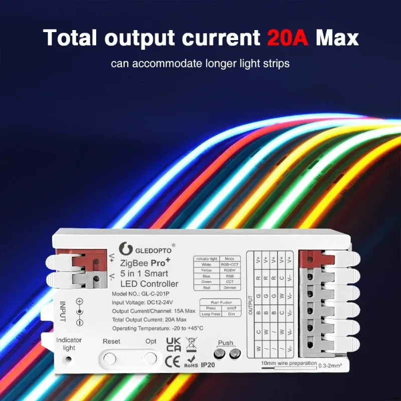 GLEDOPTO C-201P ZigBee3.0 Pro+ 5 in 1 LED Strip Controller 20A Max RGBCCT/RGBW/RGB/CCT/Dimmer Home Tuya Smart Life APP Voice Control with Alexa