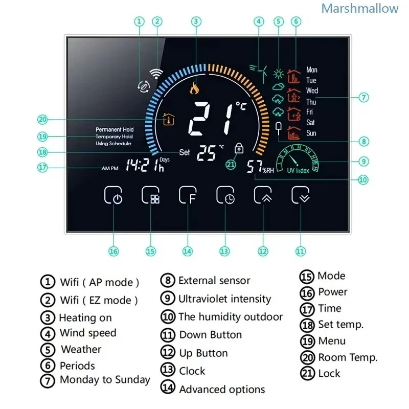 Tuya WiFi Smart Programmable Thermostat for Electric Heating LCD Display Touch Panel APP Voice Control Work with Alexa Google Home