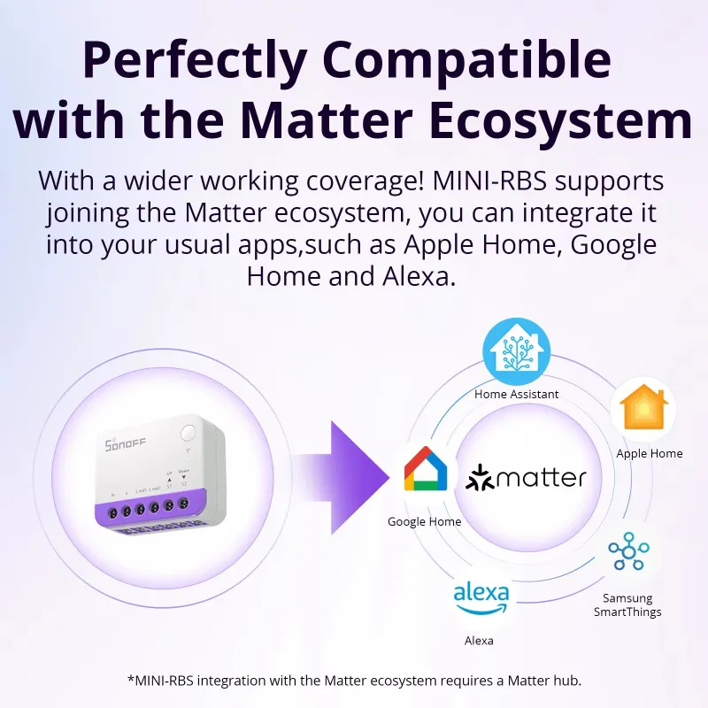 SONOFF MINI-RBS Matter Smart WIFI Curtain Switch Module for Roller Blinds Precise Percentage Control Work with Alexa Google Home