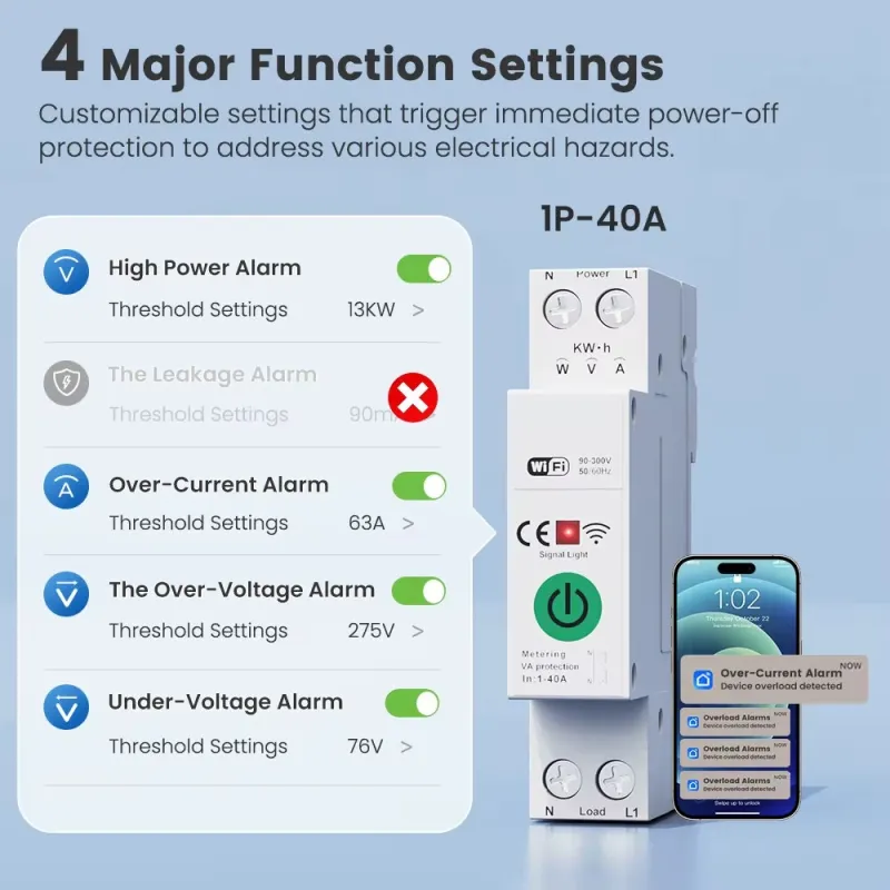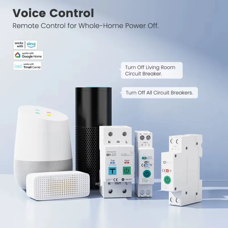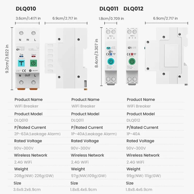 DLQ010/DLQ011/DLQ012 1P40A 2P63A Tuya WiFi Circuit Breaker Smart Home Wireless Remote Control Smart Switch Real-Time Whole-Home Power Monitor Voice Control with Alexa Google Home