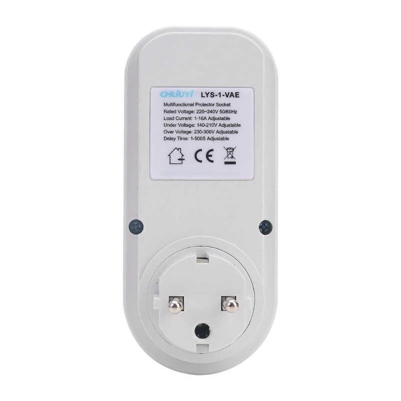 LYS-1-VAE Metering Protector Socket EU Plug with Large LED Display Current Voltage Energy Monitor Over Under Voltage Protection