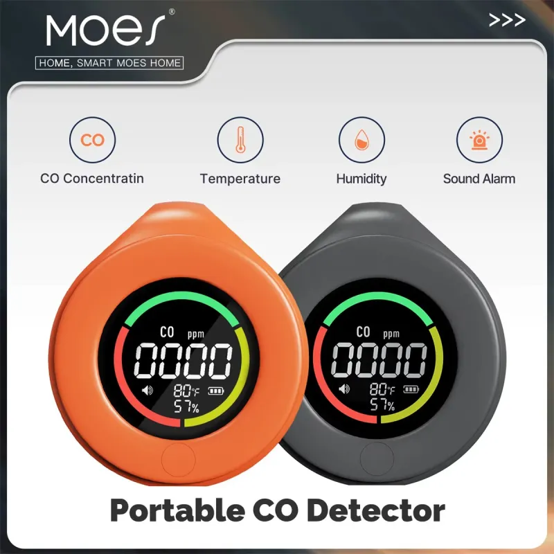 MOES Mini Carbon Monoxide Detector Travel 3-in-1 Portable Temperature/Humidity/CO Meter with Magnetic Suction 120 Hour Standby Chargeable