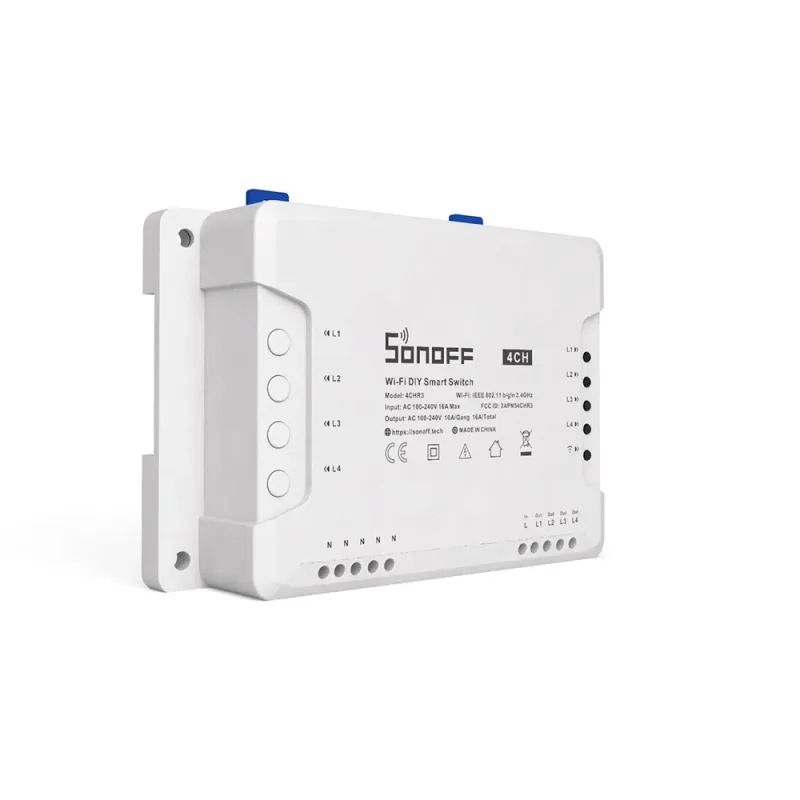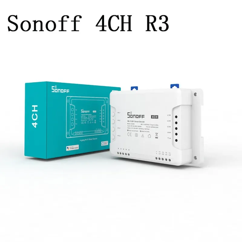 SONOFF 4CHR3 AC100-240V 50/60Hz 10A 2200W 4 Gang WiFi DIY Smart Switch Inching Self-Locking Interlock 3 Working Mode APP Remote Control Switch Works with Alexa and Google Home