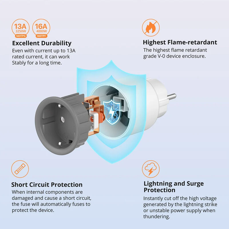 SONOFF S60 Type F/E EU Plug WiFi Socket Smart Home Power Monitor Outlet Overload Protection Timer Smart Scene Remote Control via Alexa Google Home IFTTT
