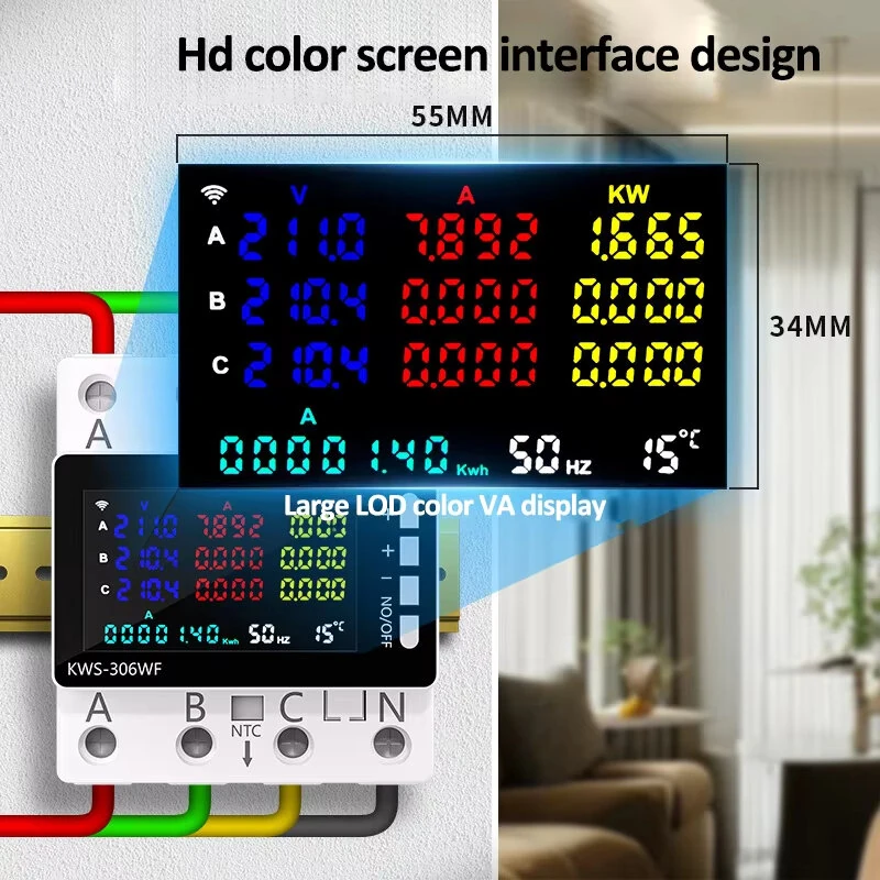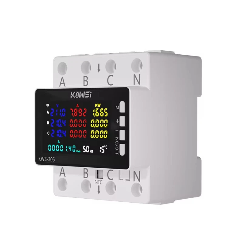 Tuya Wifi Power Energy Meter AC Monitor AC 85-290V 80A 3 Phase 4-wire DIN Rail Over Under Voltage Protector Electricity Meter