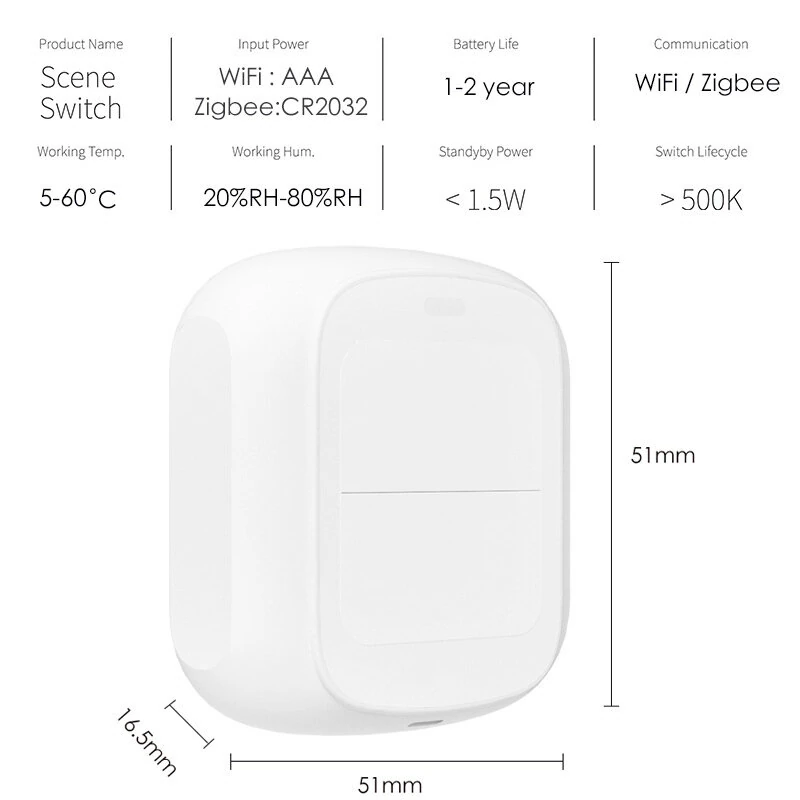 TUYA WiFi/Zigbe 2 Gangs Smart Scene Switch Wireless Remote Control Smart Home Automation Scenario Switch